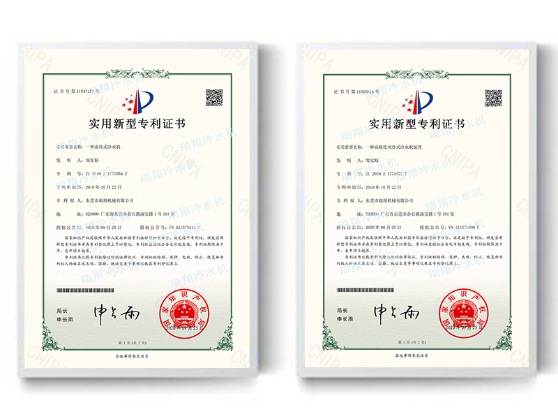 MK体育(国际)官方网站实用新型专利证书→实用新型名称:一种水冷式冷水机 实用新型名称:一种高精度风冷式冷水机装置 专利权人:MK体育(国际)官方网站