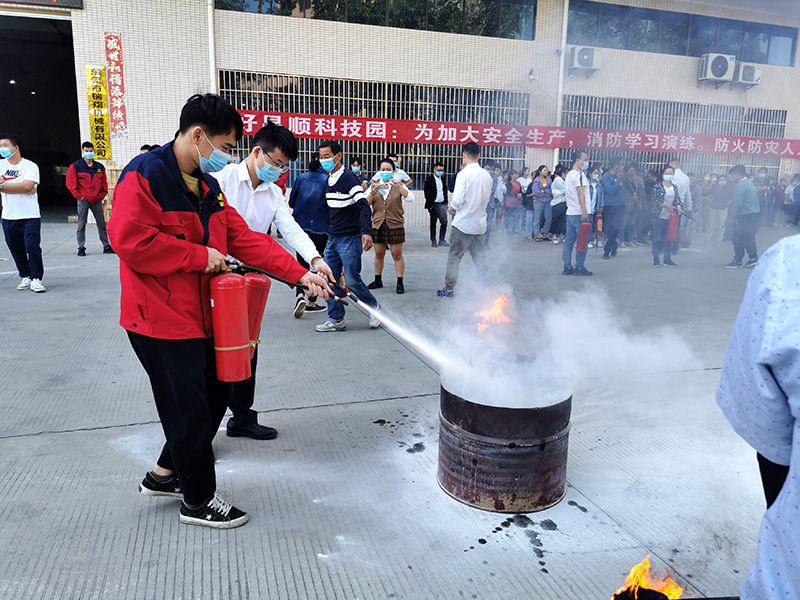 为增强全体职工消防安全意识,提高应对突发火灾的应对能力和自救能力。本次演练包含火灾逃生疏散、灭火器使用教学和初期火灾扑救、消防知识讲解等环节。演练过程中,好昌顺科技园安防队长现场演示规范快速使用灭火器,演示物理灭火等场景。