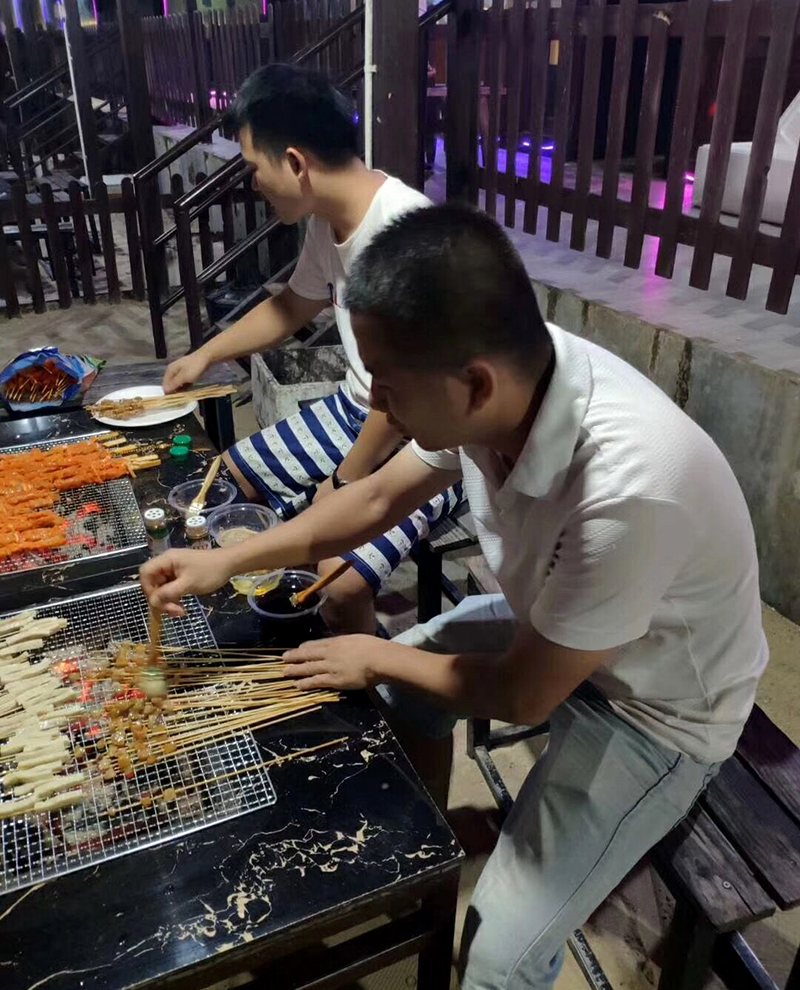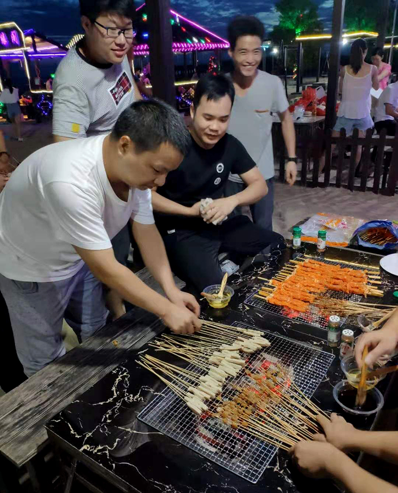 自助烧烤,还配有KTV房,公司全员动手准备食材再加上瑞翔师傅们高超的烧烤技术,烧烤美食就出炉啦。