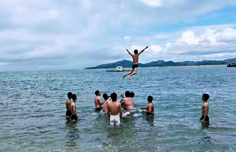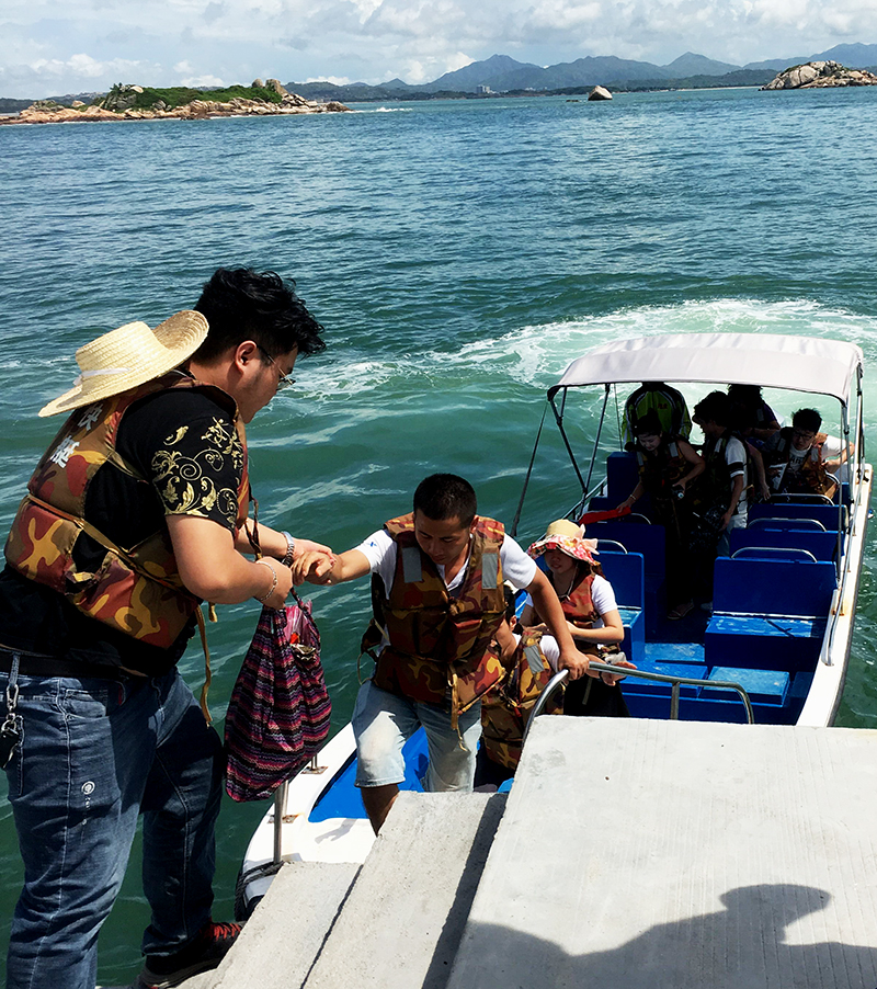 吃好早餐,我们就出发坐船登岛,伙伴们很激动哦~